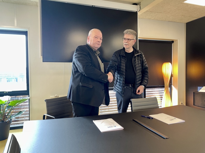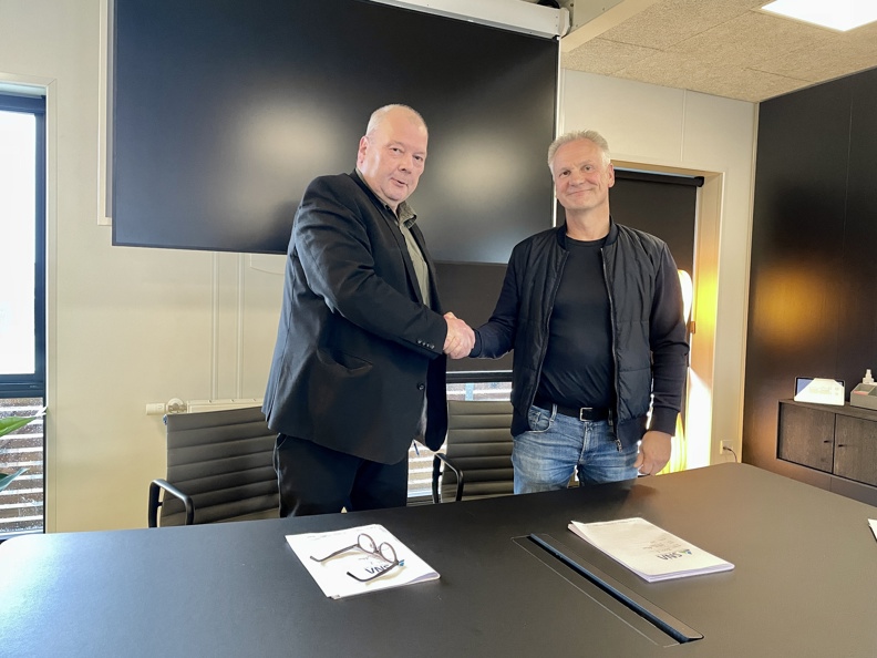 Torbjørn Jacobsen, formaður í bygginevndini hjá Sev skrivaði undir sáttmálarnar.